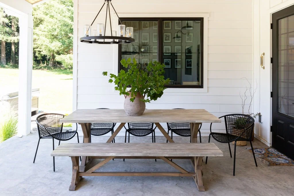 I have dreamed of a white farmhouse for as long as I can remember. However, I love the simple, clean lines of modern design. Combining the two for a Modern Farmhouse was the right answer for our family. We designed this house to work for our casual family of four on a budget. All design, construction and styling were done by myself and my husband. The house is 4,000 square feet with the master and living areas on the main floor and kid bedrooms and bonus playrooms upstairs. A covered front porch and back patio extend the living spaces during nice weather.